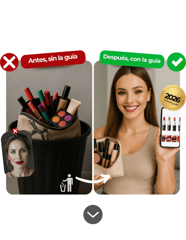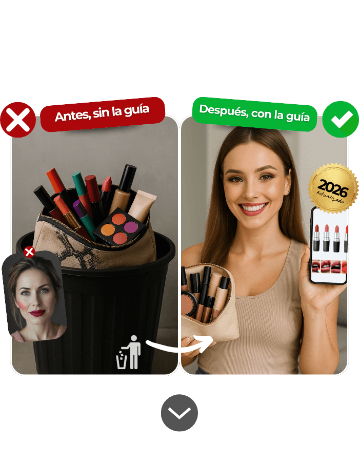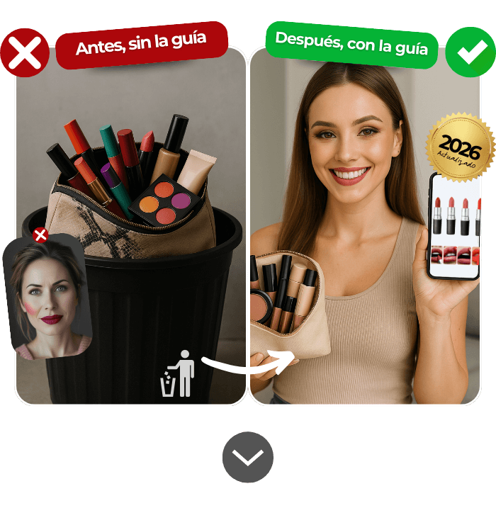 Fue entonces cuando decidí crear la Guía Maquillaje en la Paleta, reuniendo 300 productos de maquillaje probados, aprobados y alineados con cada paleta de colores, para que ya no tengas que gastar tiempo ni dinero intentando adivinar qué te funciona.